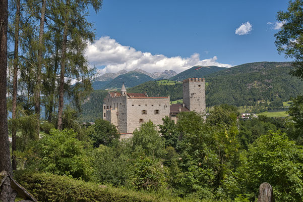 Hoch über den Dächern der Stadt thront das herrschaftliche Schloss Bruneck. Einst Sommerresidenz der Fürstbischöfe, ist es heute das markante Wahrzeichen von Bruneck, welches schon von Weitem ersichtlich ist. Erbauen ließ das Schloss im 13. Jahrhundert Fürstbischof Bruno von Kirchberg. Das Schlossgebiet ist über eine Hängebrücke mit einem Heldenfriedhof verbunden. Von dort hat man den besten Blick auf das Schloss. Unter dieser Brücke befindet sich ein Parkplatz (Gebührenpflichtig).